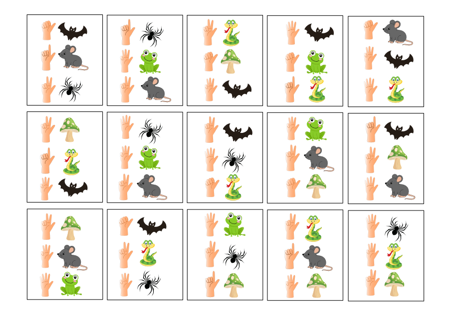Materiál obsahuje 8 stran s jednou velkou kartou, 15 kartičkami se zadáním pro mladší děti a 15 kartičkami se zadáním pro starší děti. Součástí je také velké množství malých obrázků – ingrediencí do čarodějnického kotlíku. Děti pomocí karet pomáhají čarodějnici umíchat ten správný lektvar a zároveň si procvičují počet a číslice do pěti.