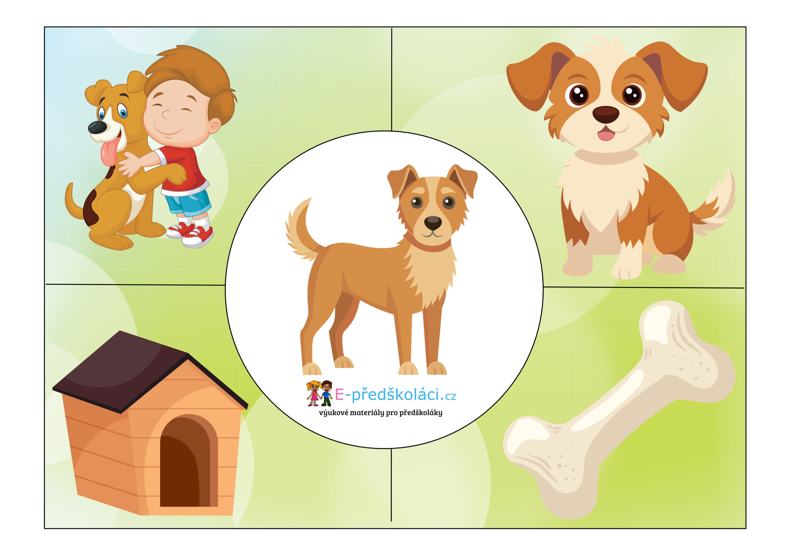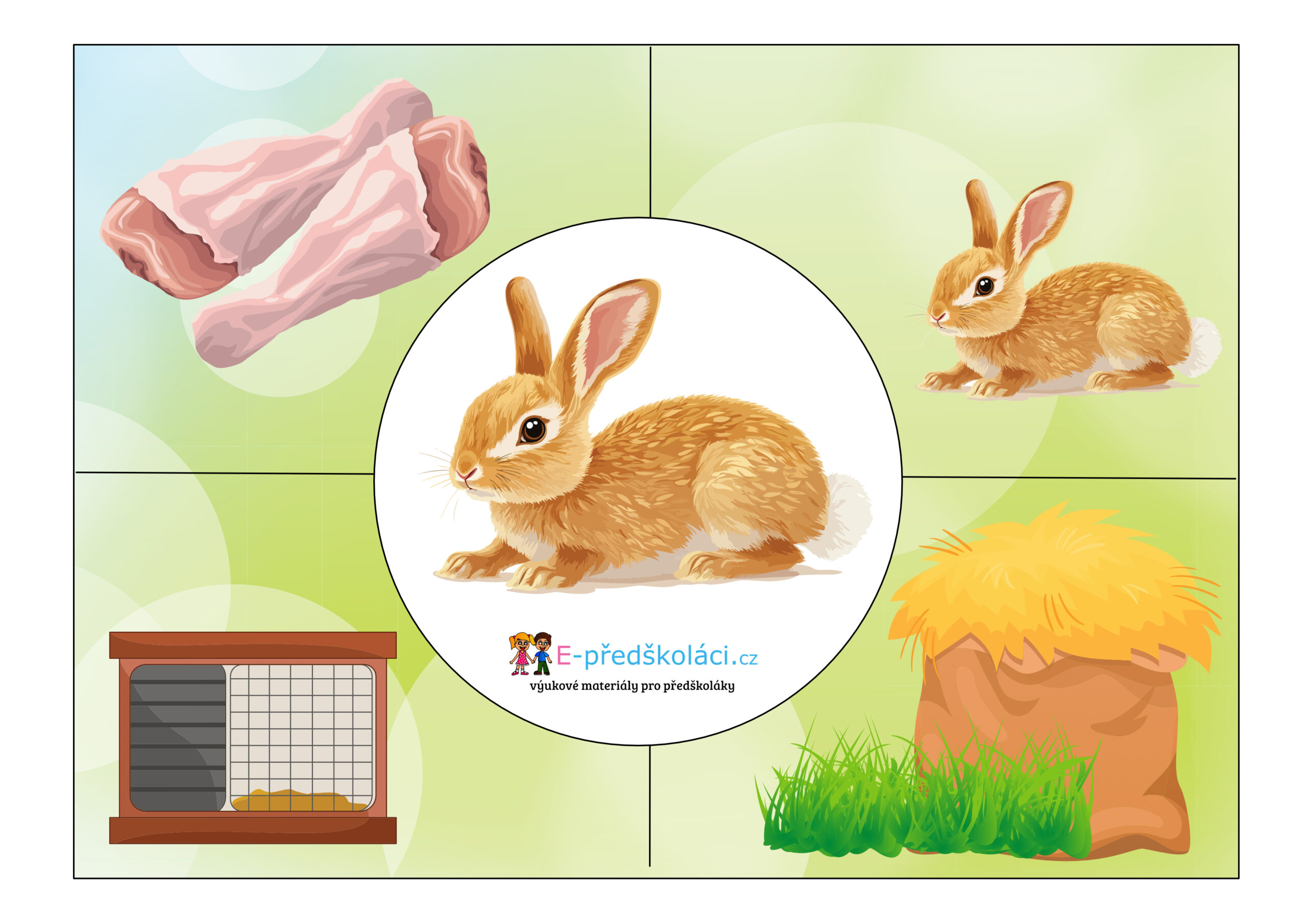 Děti přiřazují k obrázku zvířete v bílém kolečku další kartičky – mládě, potravu, prostředí, ve kterém žije, a obrázek znázorňující užitek daného zvířete. Děti jednotlivé obrázky pojmenovávají a společně vymýšlejí, co dalšího o daném zvířeti vědí.
